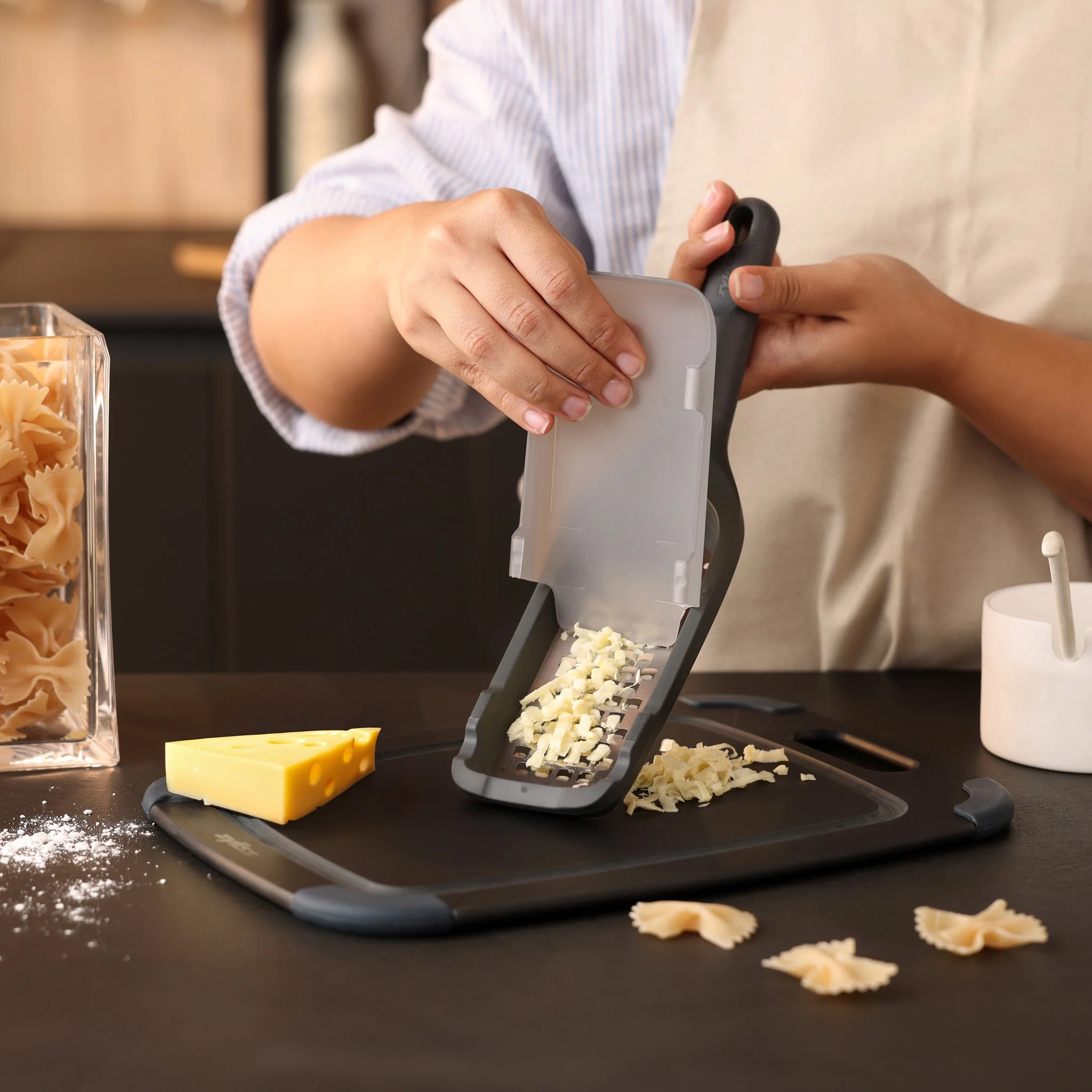 The Zyliss Coarse Grater effortlessly grates hard cheeses, fresh produce, and frozen fruits while preserving texture and flavor. Its ultra-sharp, acid-etched blade ensures precise grating without tearing, while the protective cover doubles as a scraper, preventing waste. Non-slip edges provide a secure grip for grating into a bowl or on a work surface. Dishwasher safe with an eco-friendly handle (20% wheat straw), it’s a durable, must-have kitchen tool.