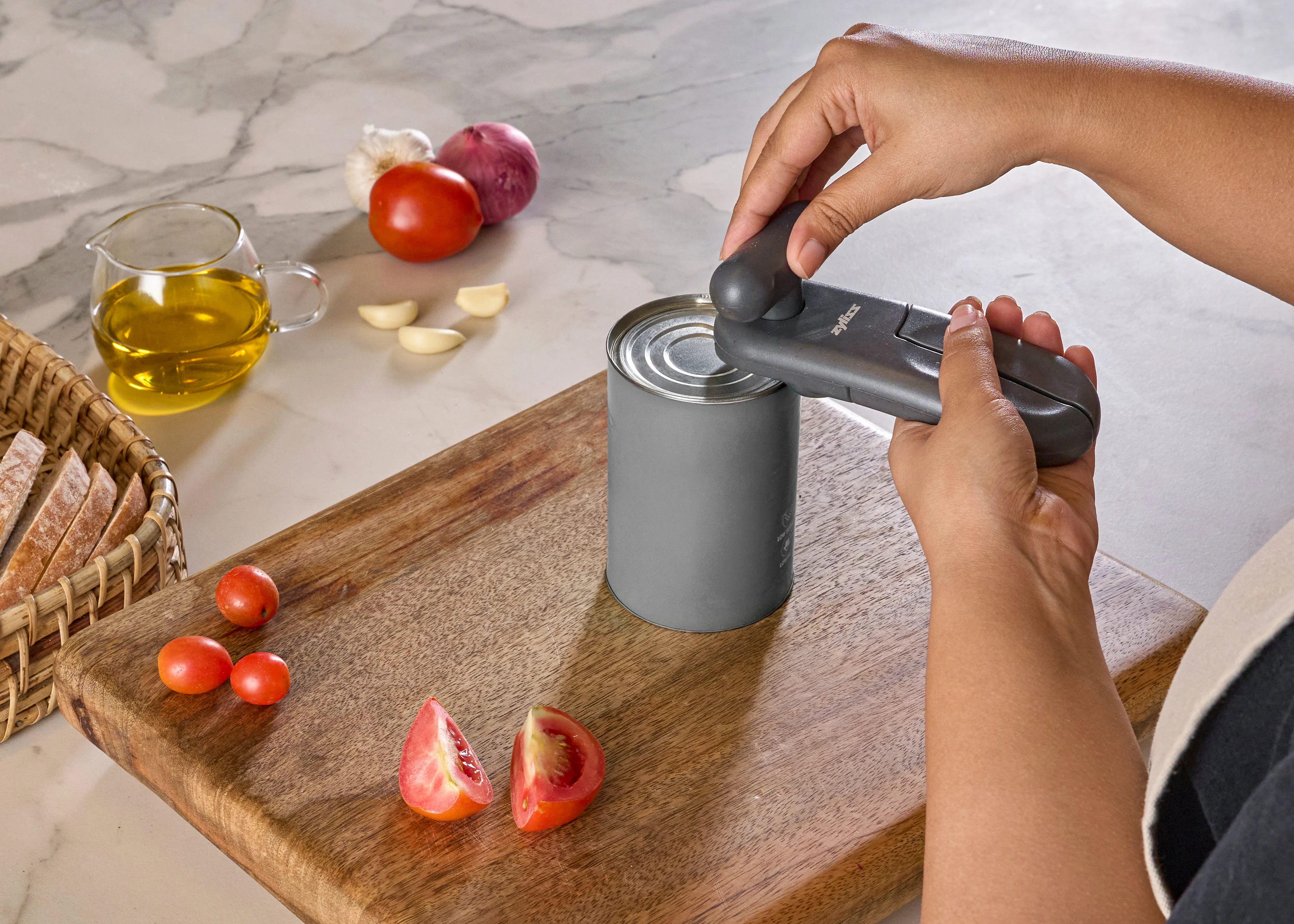 Long a number one selling tin opener in Europe, the Zyliss MagiCan manual can opener safely and efficiently opens cans of all sizes. Designed to cut around the side of the can, the MagiCan cleanly slices the lid from the can while eliminating sharp edges.